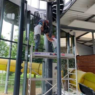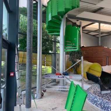 Montage escalier en résine avec la norme handicapé 1ere et dernière marche visuellement contrastée